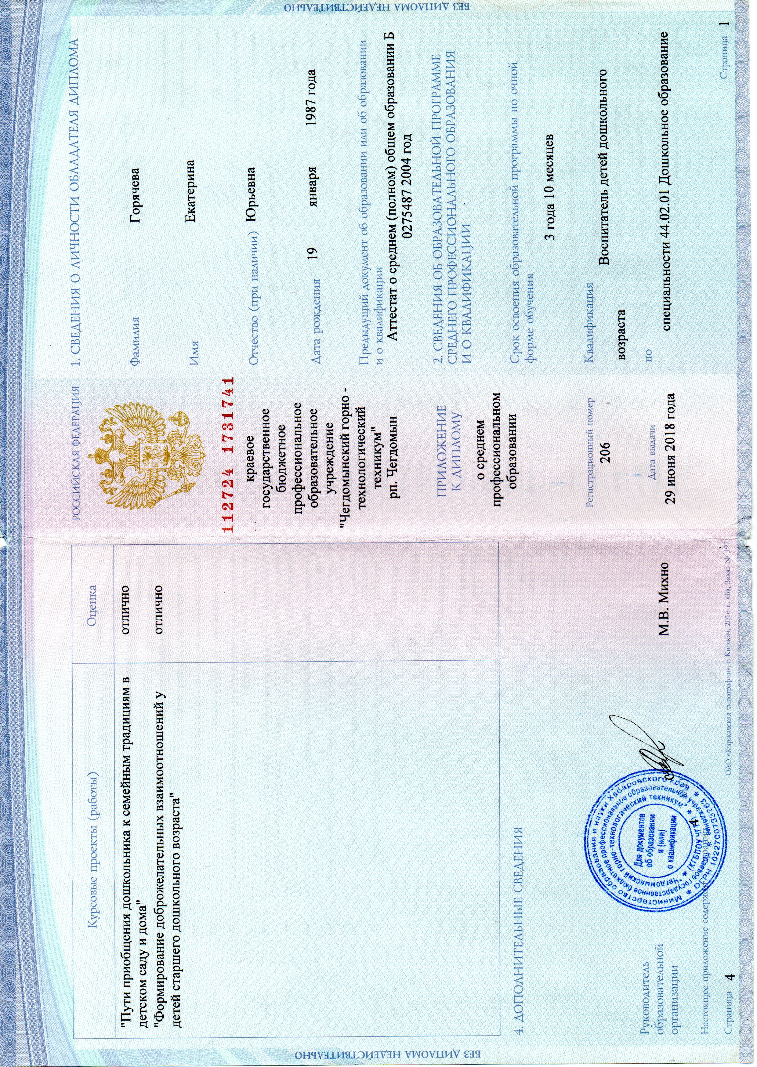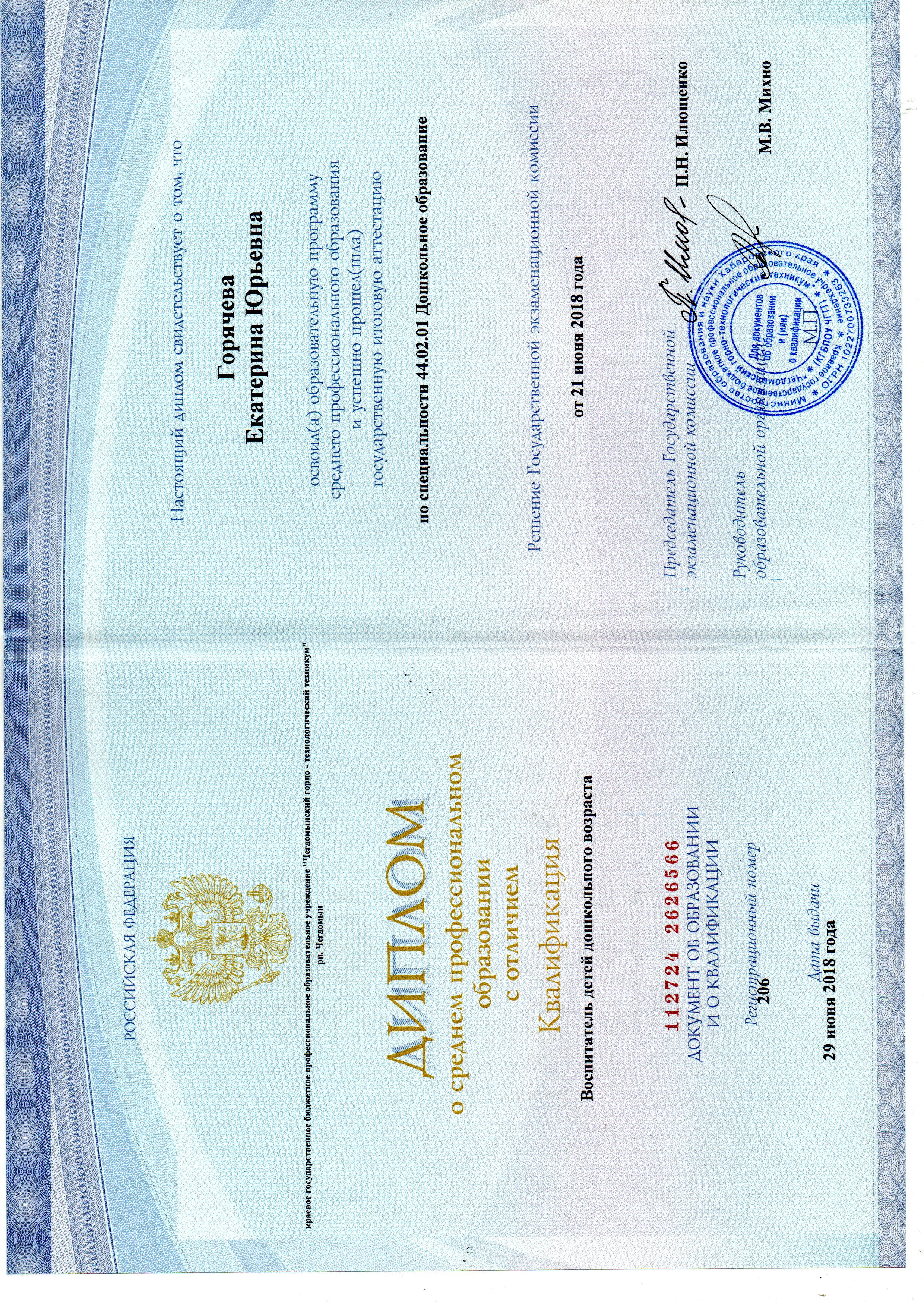 Горячева Екатерина ЮрьевнаВоспитатель группы комбинированной направленности (логопедической группы)персональный блогОБРАЗОВАНИЕ
